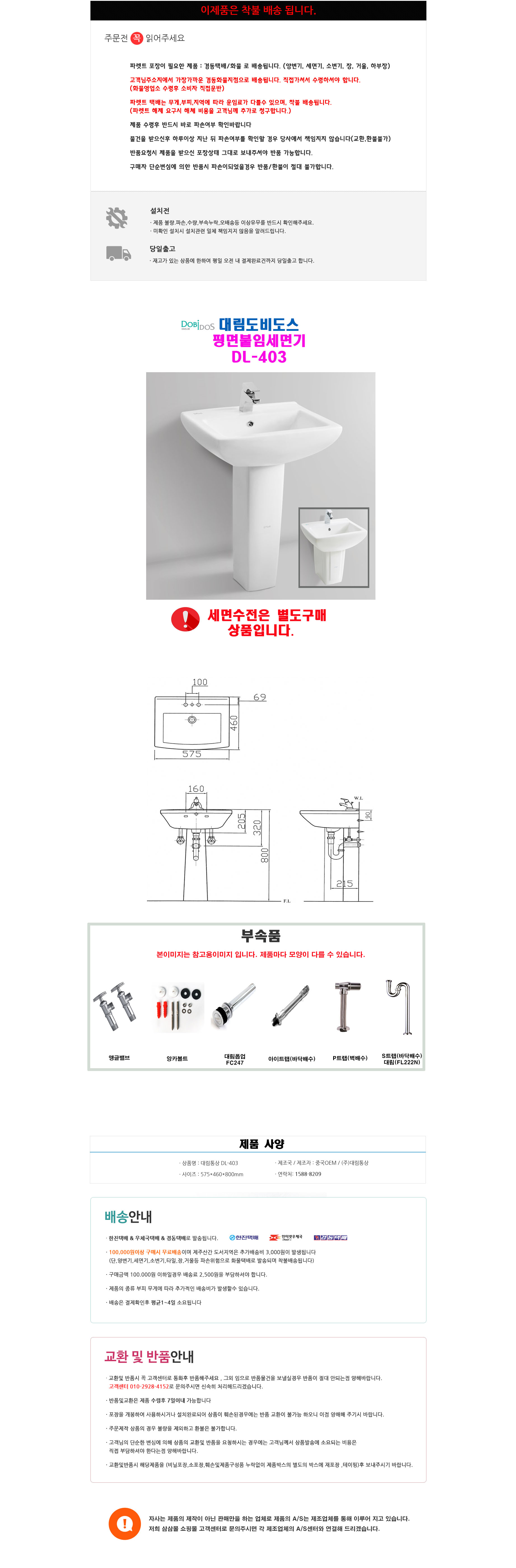 평면붙임세면기 DL-403 DL403(부속별도)