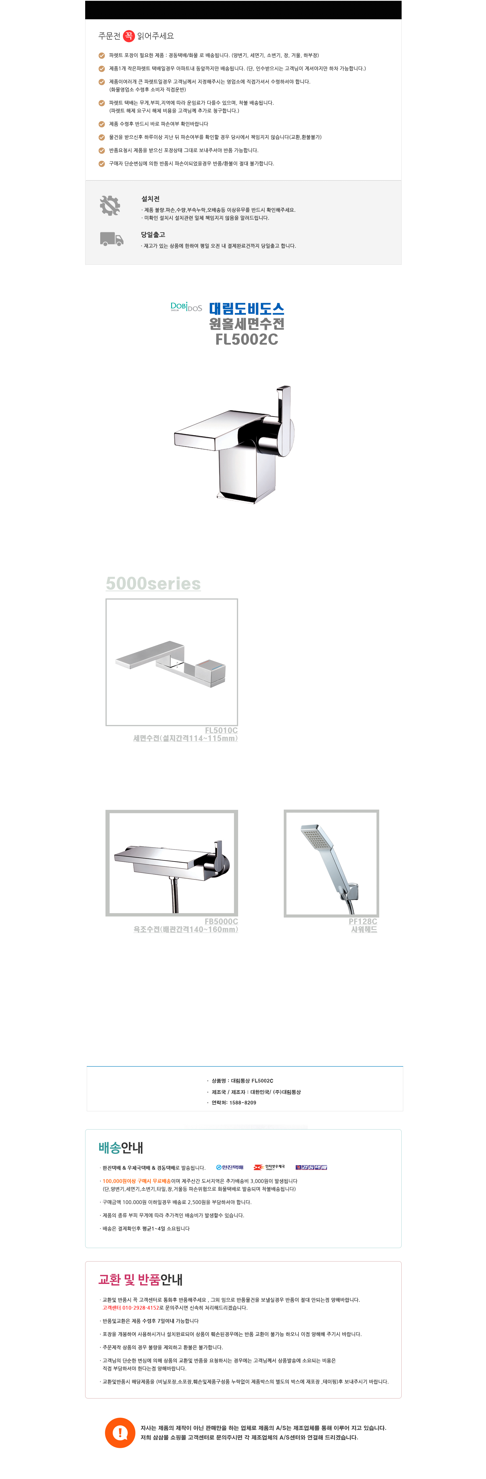 원홀세면수전 FL5002C FL5002